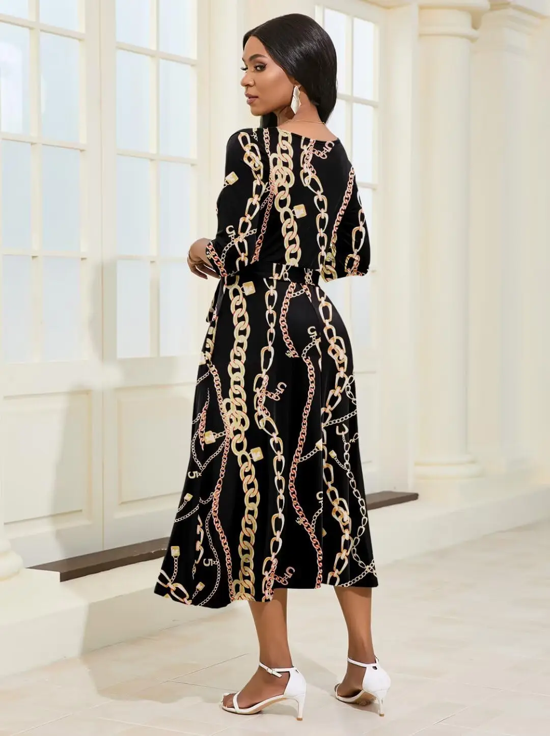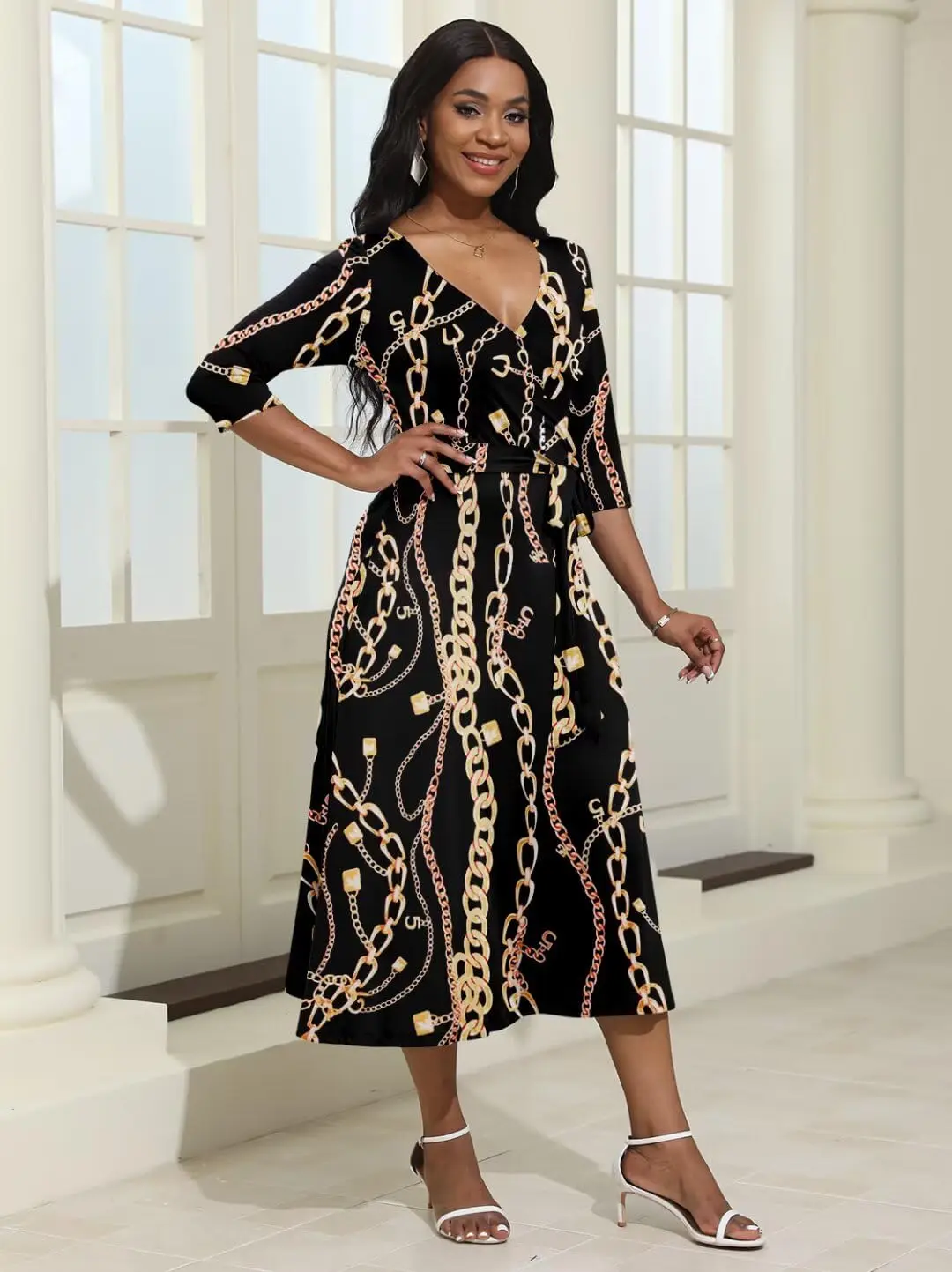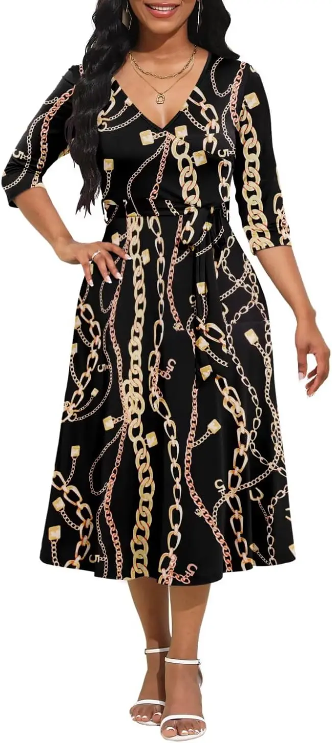 Women's Plus Size Floor-Length 3/4 Sleeve Loose Summer Chiffon Wrap Belt Casual Cocktail Dresses with Pockets ODM Curvy Style